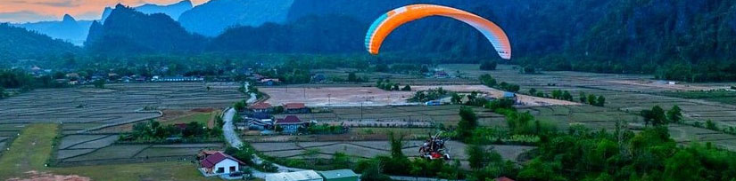 Typically, paramotor flights last for about 15 minutes. And, they can be taken throughout the day. A popular time for many is sunset. So, if you wish to see the sun going down over Vang Vieng then try to book your paramotor flight ahead.